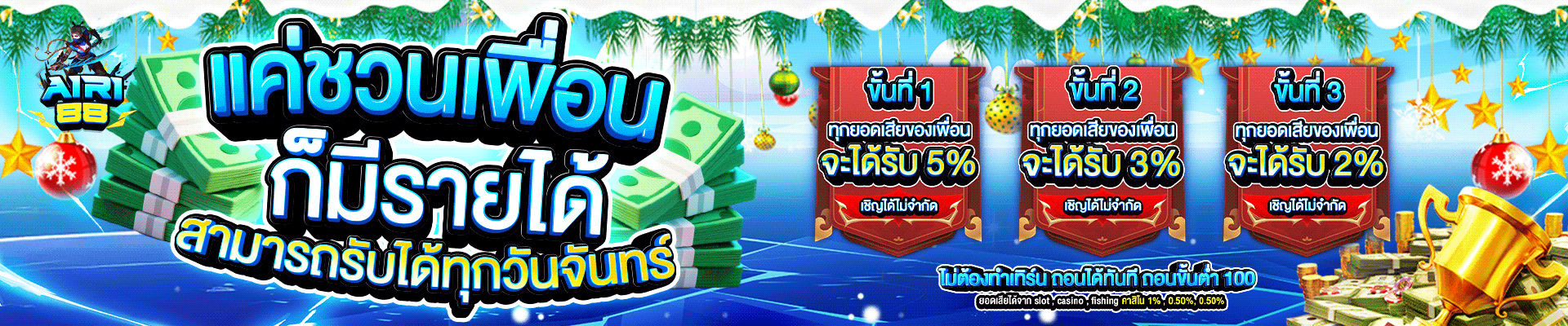 ตอบ : ที่นี่ไม่มีการกำหนดขั้นต่ำครับ จะฝาก 1 บาท หรือถอนเป็นล้านก็ทำได้ทันทีผ่านระบบออโต้ ให้อิสระทางการเงินแก่สมาชิกแบบเต็มที่